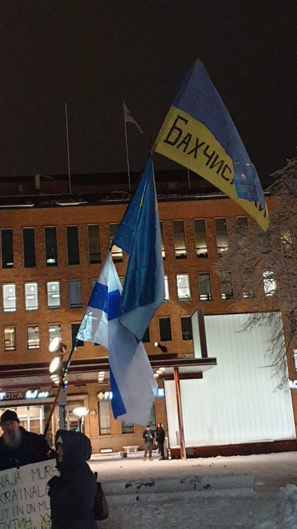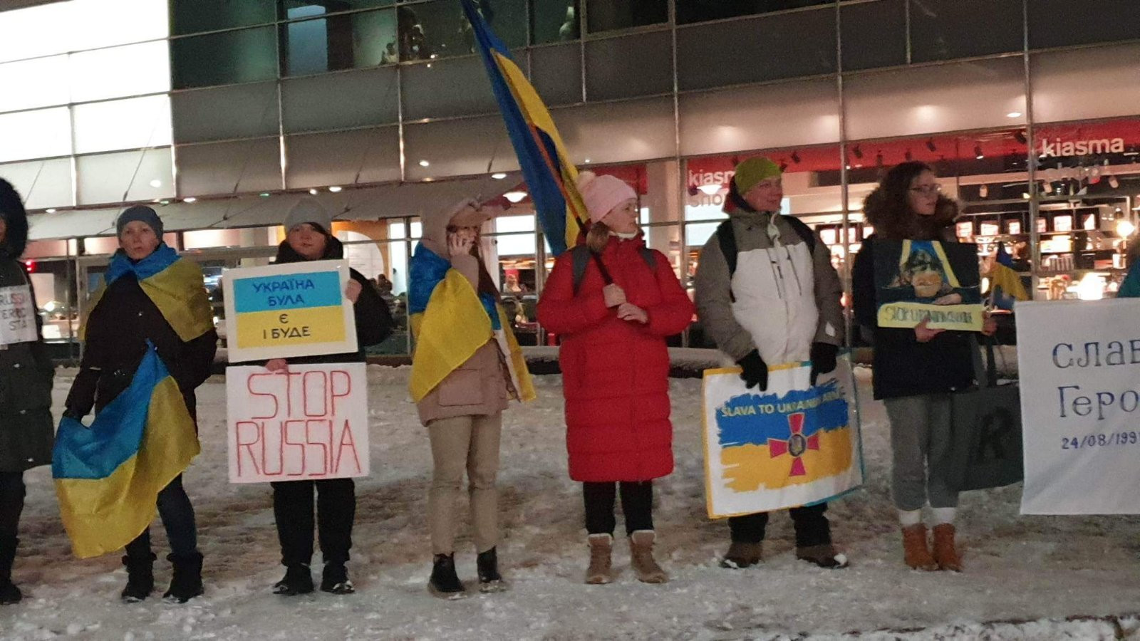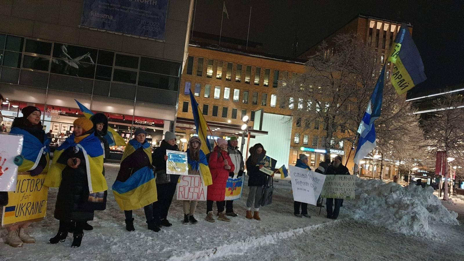 Кожного вівторка о 17.30 у місті Хельсінкі (Фінляндія) проходять акції протесту проти війни в Україні. Українці з різних міст, які знайшли прихисток у Фінляндії цією акцією мають намір нагадувати про події, які відбуваються в Україні зараз.