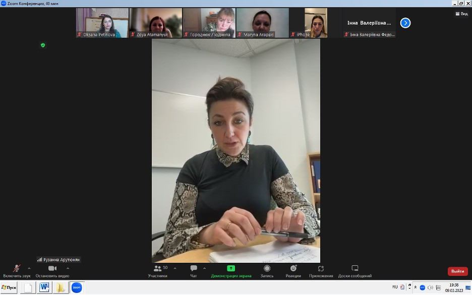 9 березня 2023 року здобувачі третього (освітньо-наукового) рівня вищої освіти ОНП Філософія (Віолета Світлицька, Юлія Міхальова, Інна Федорова, Марина Арапакі, Віолета Світлицька, Людмила Городнюк, Ігор Семенов, Лариса Васильєва), гарант ОНП проф. Оксана Петінова та член групи забезпечення ОНП доц. Зоя Атаманюк взяли участь у міжконтинентальному науково-меодичному семінарі. Спікер – PhD, SAIT (Calgary, Canada), CEO WAVE Digital marketing Рузанна Арутюнян.Питання, винесені на обговорення: сучасні методи та форми організації освітнього процесу у закладах вищої освіти Канади, інноваційні інструменти навчання та викладання; особливості наповнення та ведення профілю в Linkedin у професійній діяльності викладача, статус науковця та особливості професії науковця, «soft skills» у міжкультурній міжконтинентальній комунікації.