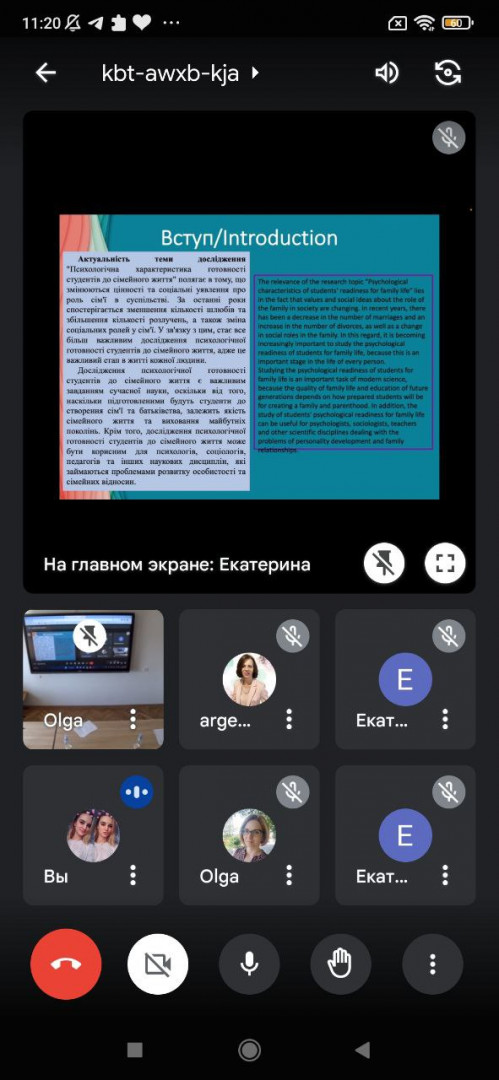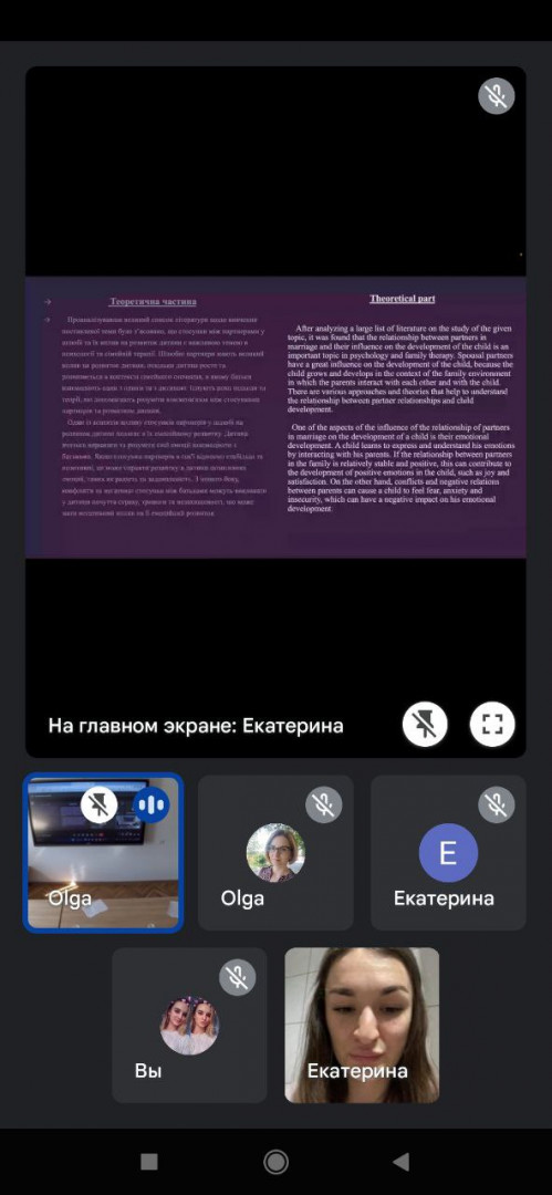 10.03.2023 року здобувачі першого (бакалаврського) рівня вищої освіти 4 року денної форми навчання за спеціальністю 053 Психологія прийняли участь у Міжнародній науково-практичній конференції "National session with international participation of student scientific communications, 27th edition", яка відбулась на факультеті психології, педагогічних наук, соціології та соціальної допомоги у Moldova State University. Здобувачі виступили з доповідями та прийняли участь у науковій дискусії. Вікторія Панченко виступила з презентацією на тему "Психологічні особливості готовності студентів до сімейного життя", Єрмак Катерина з доповіддю «Стосунки партнерів у шлюбі та їх вплив на розвиток дитини», Сембрак Анна розповіла про результати дослідження впливу стилю батьківського виховання на спортивні досягнення дитини, а Шпаковська Юлія - про зв‘язок самопрезентації особистості в інтернеті з її реальною ідентичністю. Здобувачі із зацікавленістю були залучені до науково-дослідницької діяльності, обмінювались знаннями та досвідом, задавали запитання.