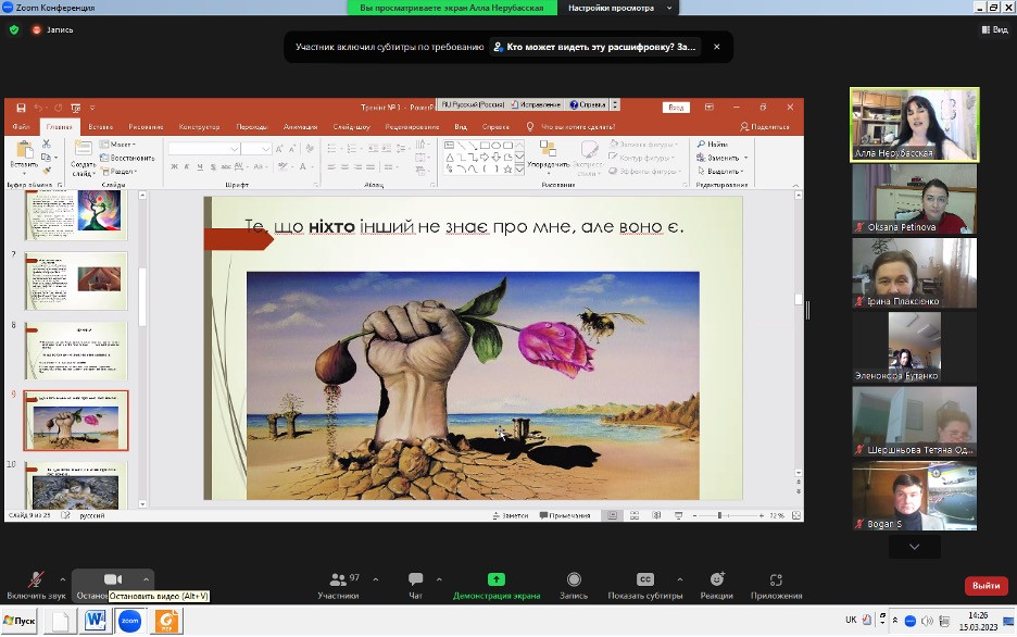 15 березня 2023 року на запрошення докт. філос. н., доц., завідувачки кафедри загальнонаукових соціальних та поведінкових дисциплін Алли Нерубаської