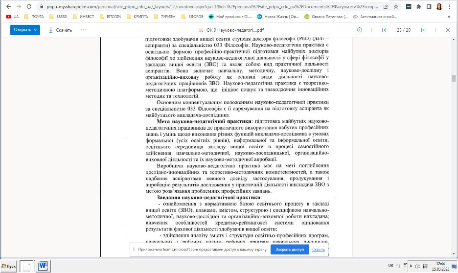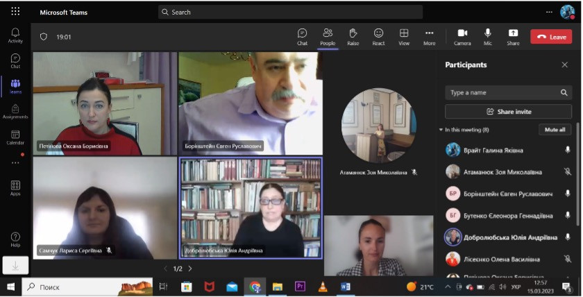 15 березня 2023 року відбулася настановча конференція з питання проходження науково-педагогічної практики аспіранткою-практиканткою 2 року навчання заочної форми навчання Елеонорою Бутенко.