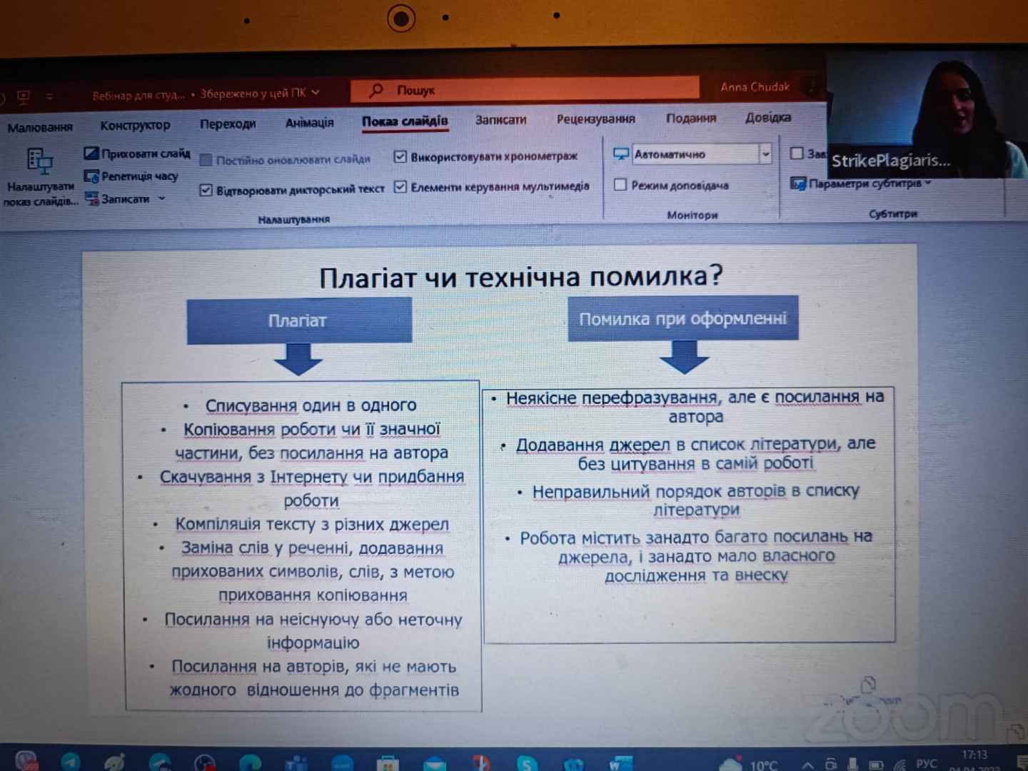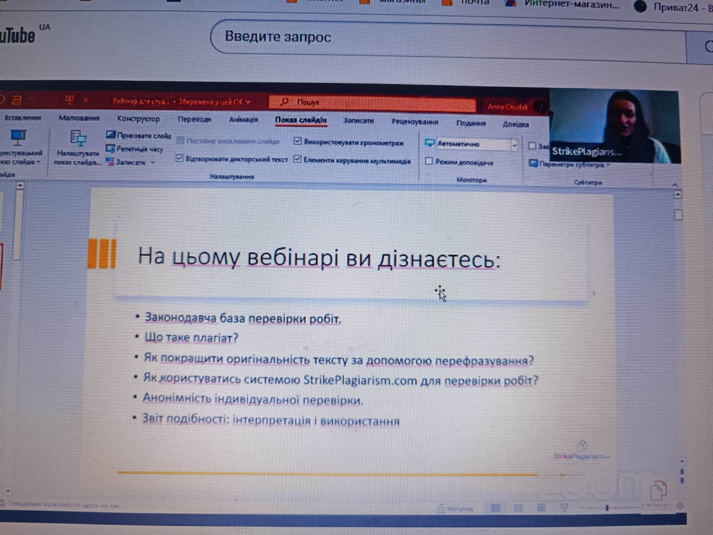 4 квітня о 17 годині викладачи кафедри загальної і диференціальної психології Ульянова Т. Ю., Меленчук Н.І., Гордієнко І.О. і здобувачі другого (магістерського) рівня вищої освіти, які навчаються за освітньо-професійною програмою «Практична психологія» за спеціальністю 053 Психологія відвідали вебінар "Як збільшити оригінальність роботи?"