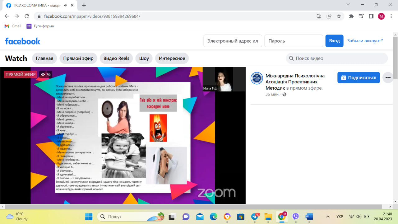 В межах зустрічі, яка була проведена за підтримки Міжнародної психологічної асоціації, психологиня Ольга Шабловська поділилася 10-річним досвідом роботи з психосоматикою.