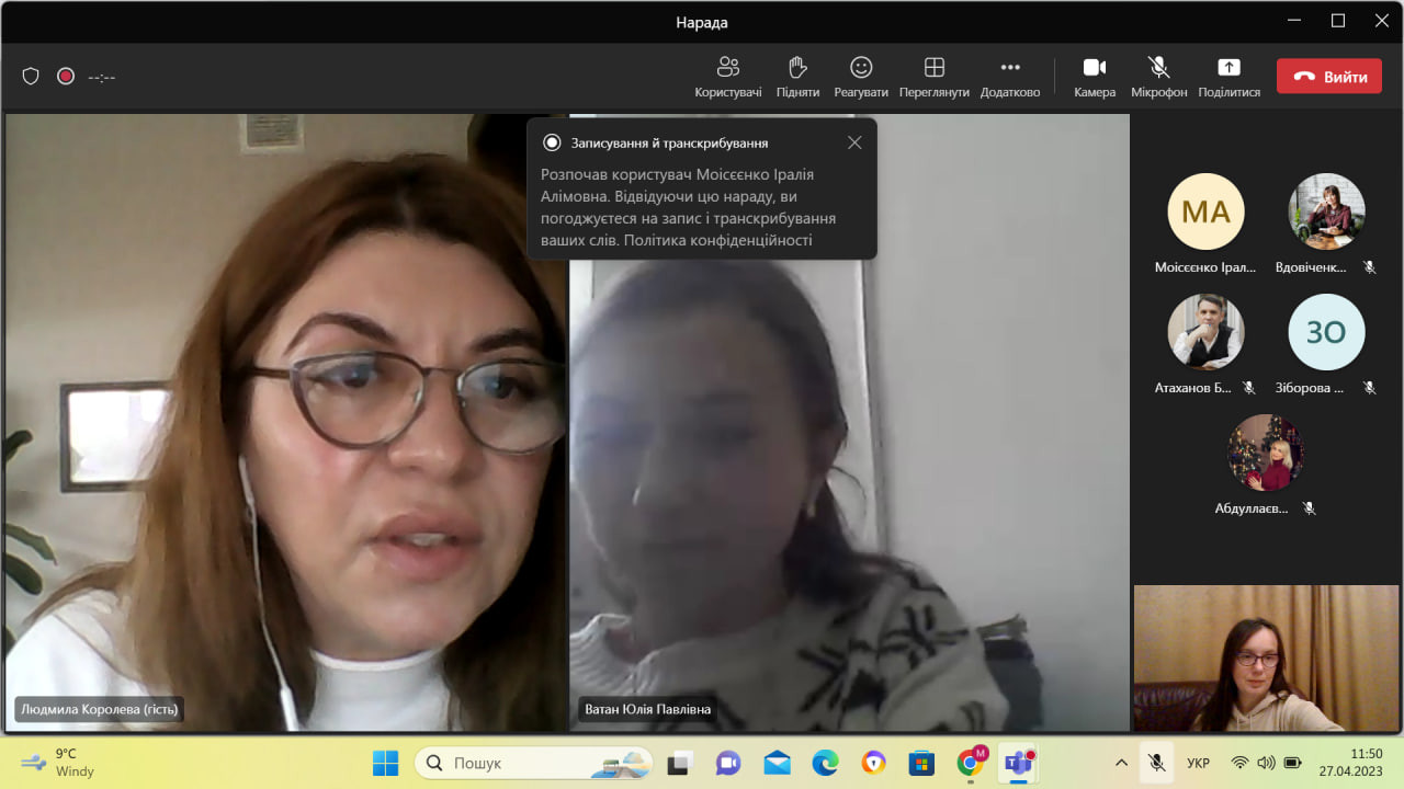 27 квітня 2023 року відбулося бінарне заняття у межах вивчення вибіркової дисципліни «Сучасні методи та практики у роботі психолога» (професор Оксана ВДОВІЧЕНКО).