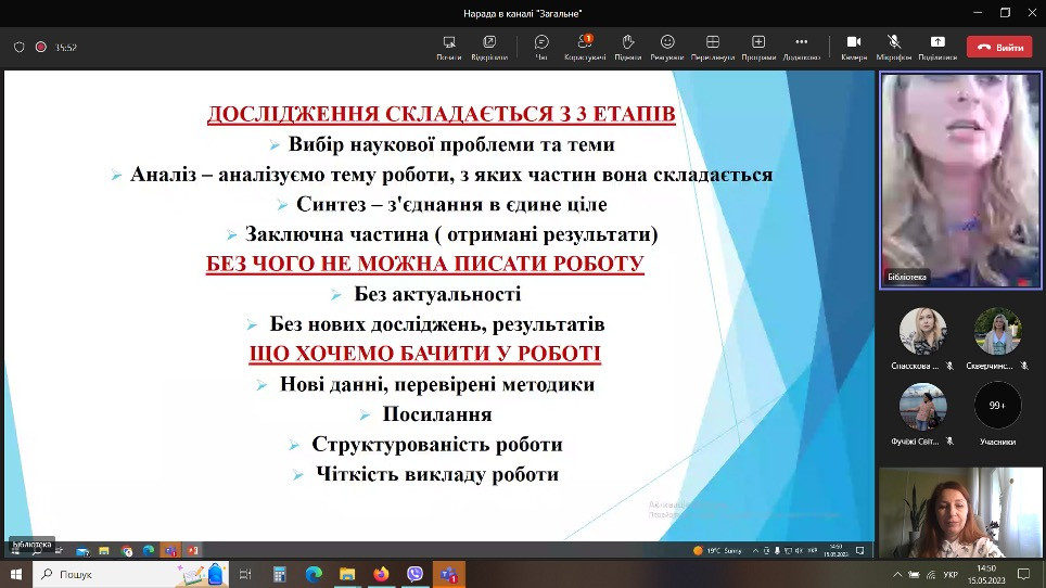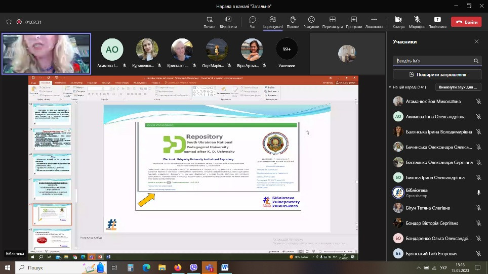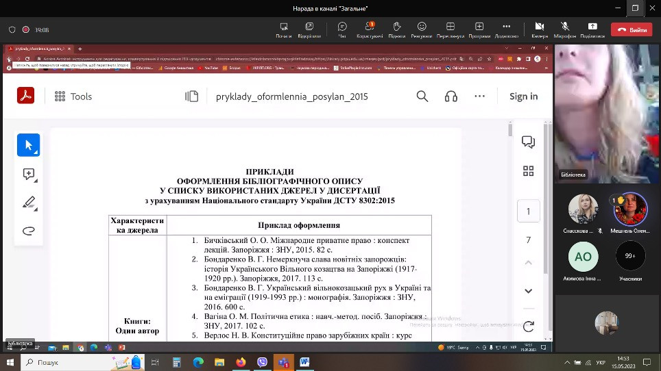 В рамках проведення Днів науки в Університеті Ушинського 15 травня 2023 року силами бібліотеки було проведено онлайн-лекцію «Вимоги до оформлення списку використаних джерел у наукових роботах».