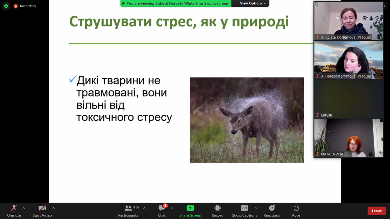 17 травня 2023 року гарант та здобувачі ОНП Психологія прийняли участь в онлайн-практикумі із тілесно-орієнтованої травма-терапії, яку провела Elsbeth Horbaty на тему «Запобігання вигоранню та підтримка життєстійкості волонтерів: як подбати про свою безпеку і здоров'я, допомагаючи іншим».