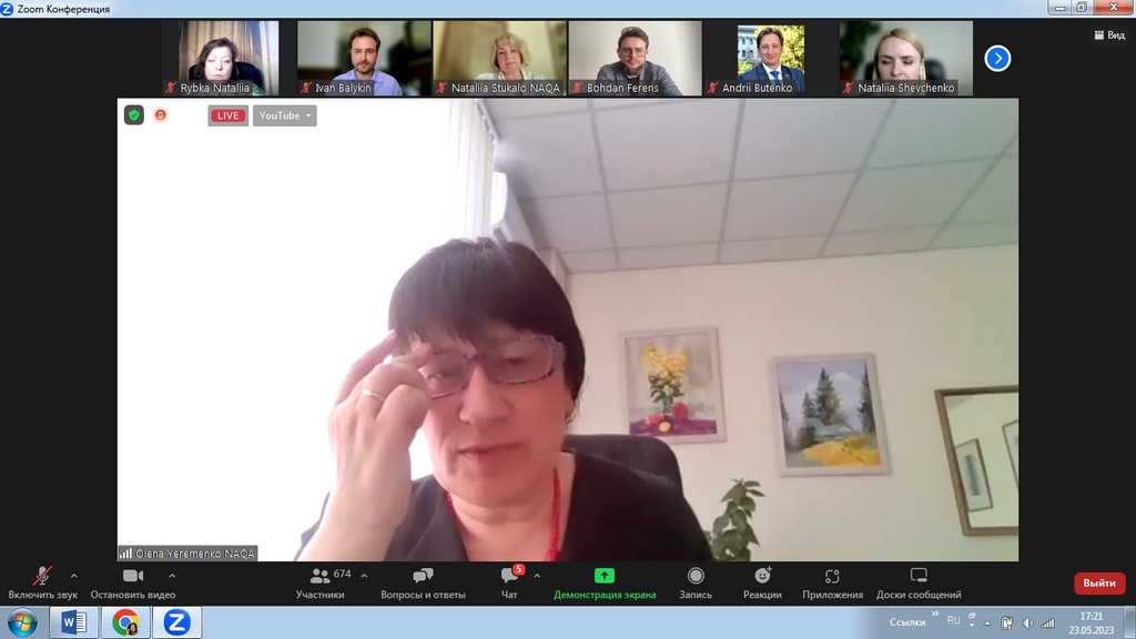 23 травня 2023 року здобувачі третього (освітньо-наукового) рівня вищої освіти ОНП «Філософія» (Інна Фелорова, Людмила Городнюк, Віолета Світлицька, Марина Арапакі, та інші) й гарант ОНП проф. Оксана Петінова взяли участь в онлайн-заході, який організували та провели спікери Нацагенства із забезпечення якості вищої освіти щодо обговорення законопроєкту