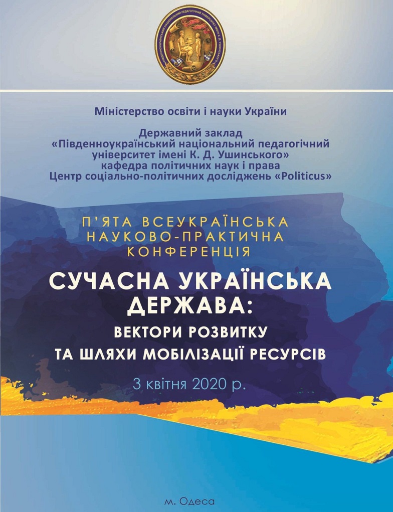 3 квітня 2020 р. відбулась традиційна П’ята Всеукраїнська науково-практична конференція «Сучасна українська держава: вектори розвитку та шляхи мобілізації ресурсів», організаторами якої є кафедра політичних наук і права та Центр соціально-політичних досліджень «Politicus».