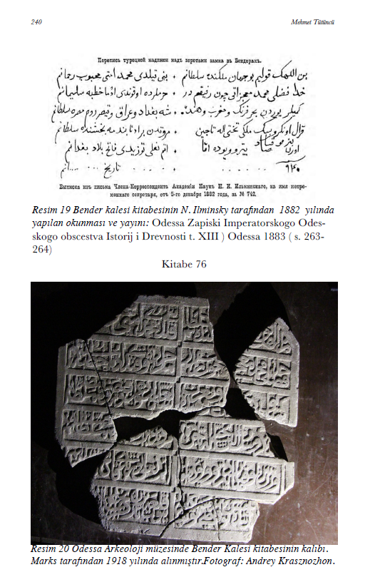 Особливу увагу дослідників східної епіграфіки привернула увагу знахідка повномірної копії 19 ст. унікальної та дуже відомої плити з написом від імені султана Османської Імперії, Сулеймана I Пишного. Оригінал плити знаходився до початку 20 ст. на стінах Бендерської фортеці та відтоді був загублений.