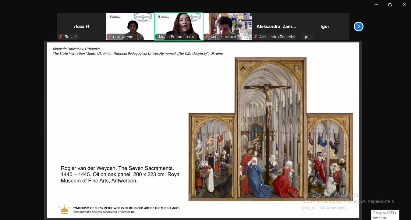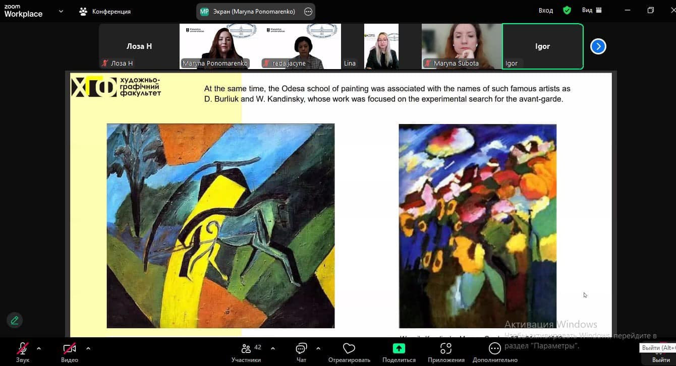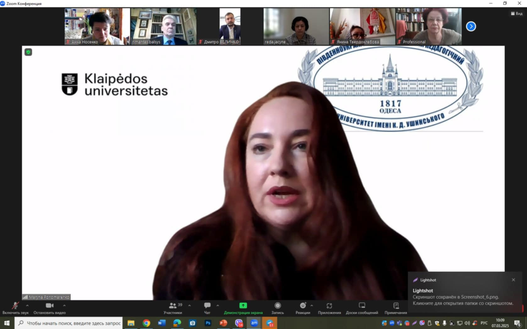 7 березня 2025 року в контексті нових вимог до освіти, пов’язаних з європейською інтеграцією України, ДЗ «Південноукраїнський національний педагогічний університет імені К.Д. Ушинського» ХГФ - Університет Ушинського Університет Ушинського м. Одеса взяв участь як партнер в Міжнародній науково-практичній онлайн-конференції «ЄВРОІНТЕГРАЦІЯ В МИСТЕЦТВІ, НАУЦІ ТА ОСВІТІ: ДОСВІД, ПЕРСПЕКТИВИ РОЗВИТКУ», яка відбулась в Клайпедському Університеті (Литва).