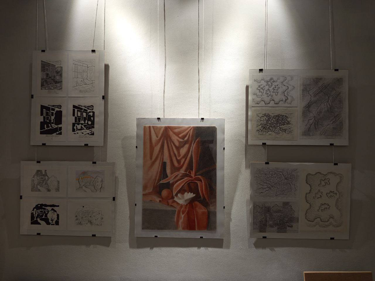 В експозиції представлено твори живопису і графіки у різних жанрах: натюрморти, портрети, пейзажі, анімалістика, абстрактні композиції. На виставці показано як відмінно виконані академічні роботи, так і авторські експериментальні пошуки, де вже явно прочитується індивідуальність молодої мисткині.