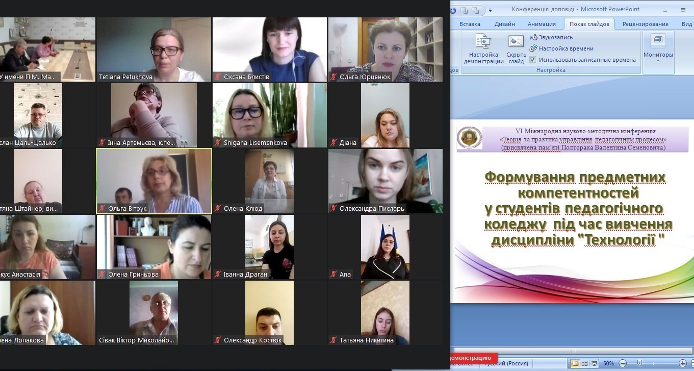 26-28 травня 2021 року кафедрою технологічної та професійної освіти художньо-графічного факультету Університету Ушинського організовано та проведено в он-лайн форматі VІ Міжнародна науково-методична конференція «Теорія та практика управління педагогічним процесом» (присвячена пам’яті Полторака Валентина Семеновича).