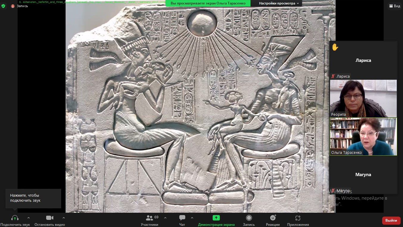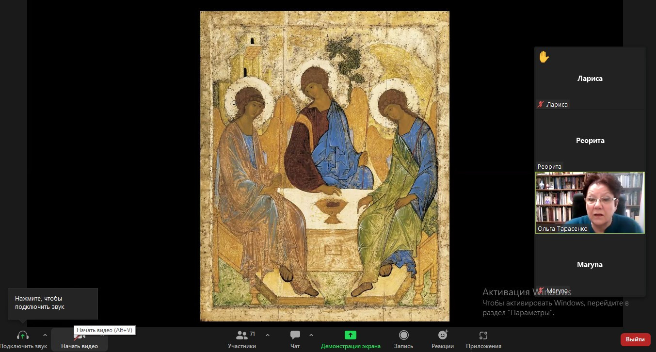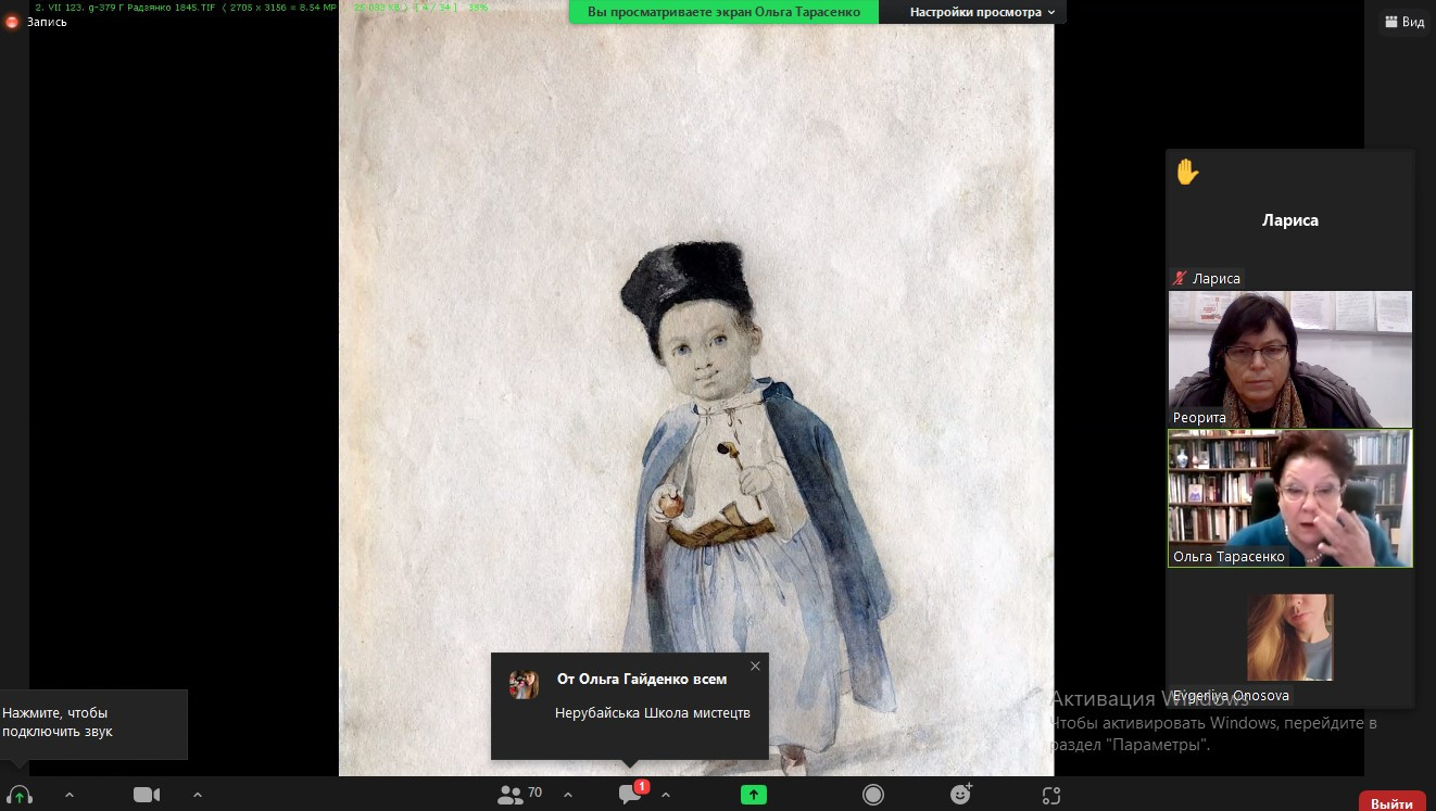 Голова Наукової школи артсинергетики доктор мистецтвознавства, професор Ольга Андріївна Тарасенко презентувала особливо важливу для сьогодення життєстверджуючу тему родини, розкривши її символічний змістовний контекст на прикладі картини Тараса Шевченка «Селянська родина».