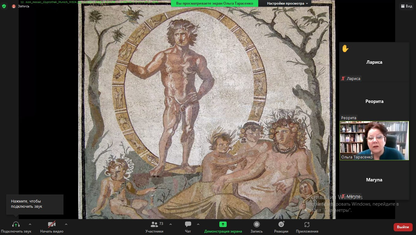 Презентація твору Тараса Шевченка була побудована на принципі дослідження у широкому часовому та культурному діапазоні світового мистецтва засобами компаративного методу, як провідного для наукової школи О.А. Тарасенко.