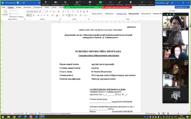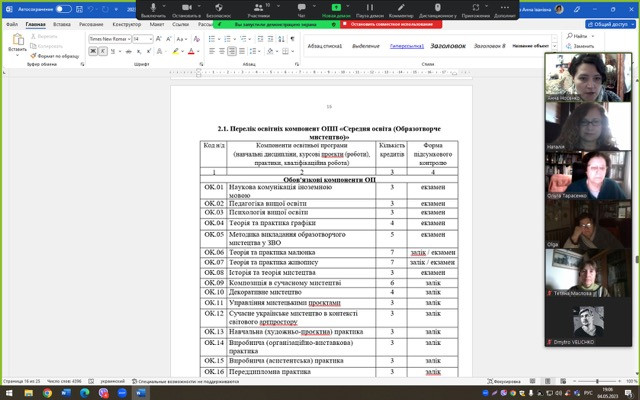 4 травня 2023 року в межах громадського обговорення проєктів освітніх програм на 2023-2024 навчальний рік відбулась онлайн-зустріч членів робочої групи та викладачів кафедри образотворчого мистецтва з Наталією Романівною Кубриш, кандидатом мистецтвознавства, доцентом кафедри рисунка, живопису та архітектурної графіки Одеської державної академії будівництва та архітектури, членом Національної спілки художників України.