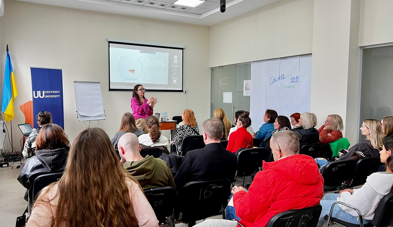 9 жовтня 2025 року Науково-практичний Центр ментального здоров’я Університету Ушинського зібрав студентську, академічну та професійну спільноту на унікальну подію - відкриту зустріч з Ольгою Литвиненко, докторкою психологічних наук, психотерапевткою, аналітичною психологинею, членкинею Правління Всесвітньої асоціації позитивної психотерапії (WAPP).