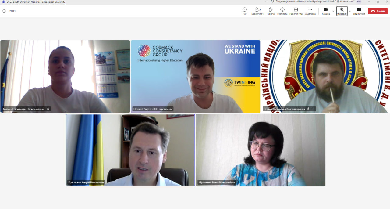 15 серпня 2025 року в Університеті Ушинського відбулася робоча зустріч з представником організації Cormack Consultancy Group International Higher Education у рамках реалізації міжнародного проєкту Twinning.