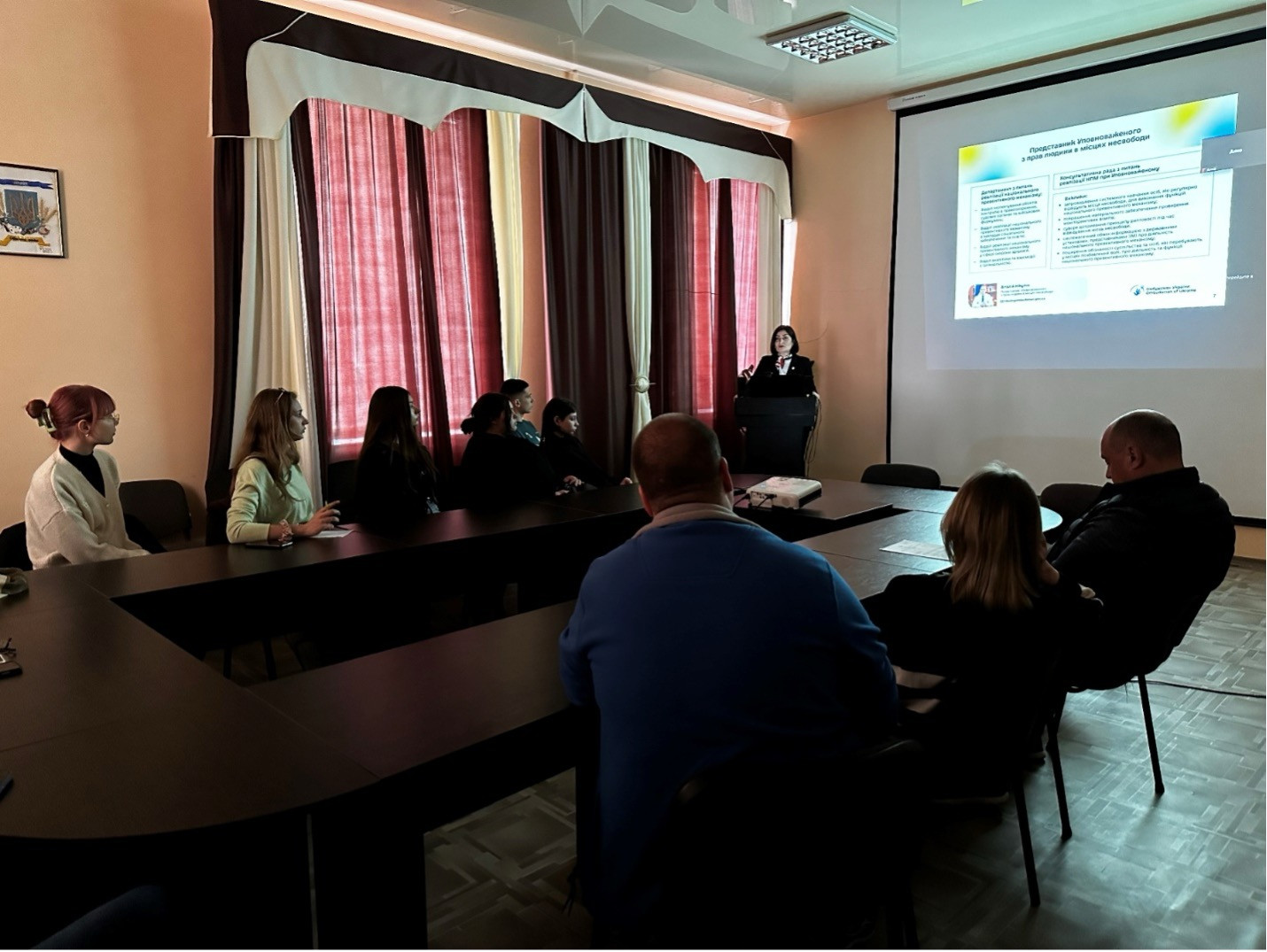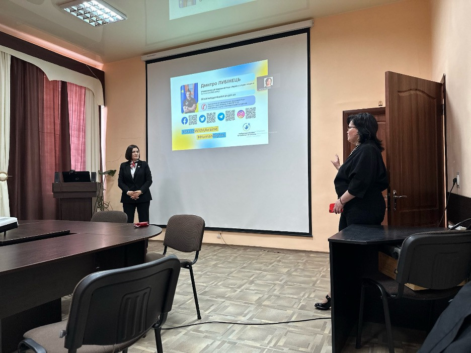 Під час спілкування з омбудсменом студенти мали можливість долучитися до обговорення питань контролю за дотриманням конституційних прав і свобод людини і громадянина, захисту прав в умовах війни та миру. Здобувачам освіти було презентовано зміст діяльності омбудсмана в умовах воєнного стану.