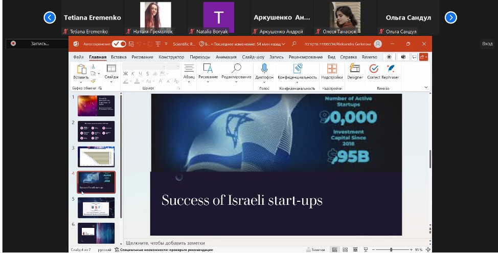 На початку події виступила професор Єременко Тетяна Євстафіївна, завідувач кафедри германської філології та методики викладання іноземних мов. Вона розповіла про багаторічний досвід академічної співпраці Університету Ушинського з Аріельським Університетом.