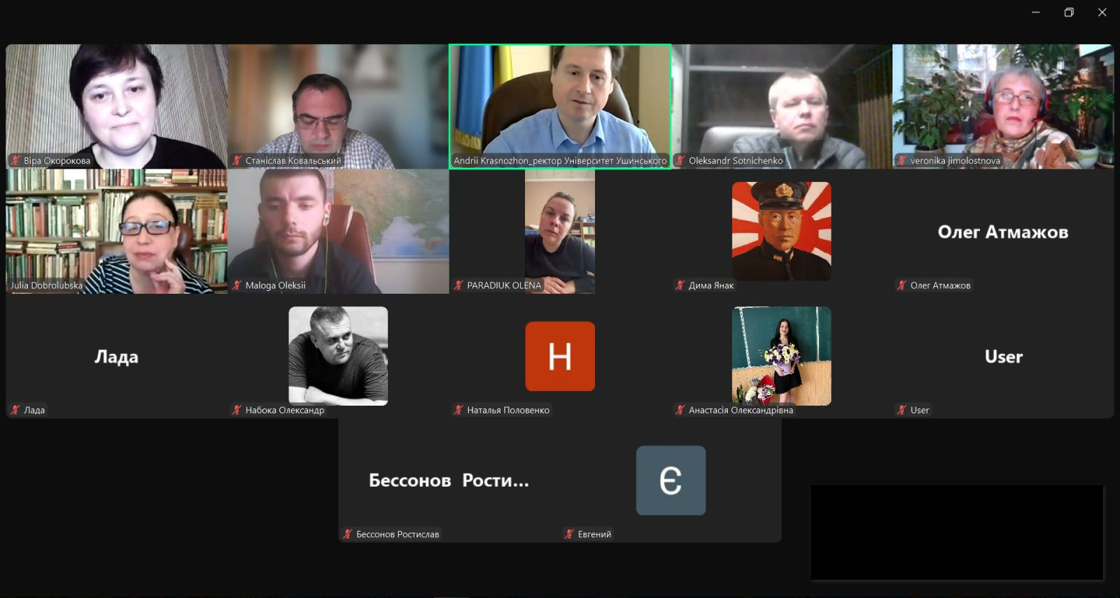 З привітальним словом до учасників конференції звернувся д. іст. н., професор кафедри історії України, ректор Університету Ушинського А. В. Красножон. В своїй промові ректор зазначив важливість таких заходів для культурного та наукового розвитку здобувачів в умовах сьогодення та побажав успіху конференції та затвердження нової традиції в стінах нашого Університету. Учасники конференції заслухали доповідь ректора про долі науковців та наукових установ в умовах війни.