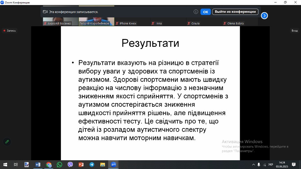 3 червня 2025 року на базі кафедри біології та здоров’язбережувальних технологій ДЗ «Південноукраїнський державний університет імені К.Д. Ушинського» для здобувачів вищої освіти другого (магістерського) рівня спеціальності 017 фізична культура і спорт (Адаптивна фізична культура), а також для інших здобувачів цієї спеціальності, у межах меморандуму про співпрацю, було проведено відкриту лекцію «Когнітивні та вегетативні властивості у дзюдоїстів з аутизмом» яку провів Коробейников Георгій Валерійович – доктор біологічних наук, професор, Заслужений діяч науки і техніки України, професор-дослідник (Німецький університет спорту (Німеччина, м. Кельн).