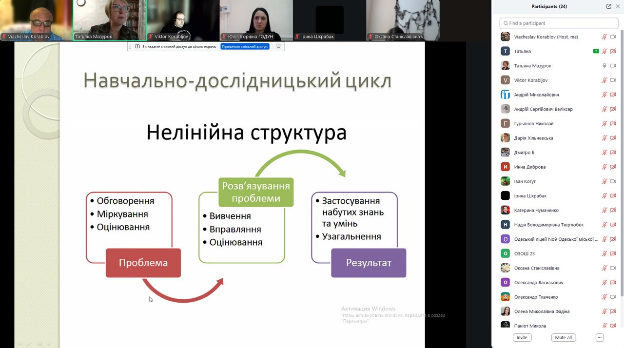 23 жовтня 2025 року відбувся методичний онлайн-семінар з питань розробки та впровадження проєктування робототехніки на уроках інформатики. Спікер — доктор технічних наук, професор, завідувач кафедри прикладної математики та інформатики Тетяна Леонідівна Мазурок. Під час семінару було акцентовано методичні засади інтеграції робототехнічного проєктування як дидактичного інструменту в базовому курсі інформатики, логіку навчально-дослідницького циклу, приклади побудови уроків та використання типового апаратно-програмного комплекту. Матеріали доповіді узгоджені з концепцією НУШ і підкріплені практичними кейсами.