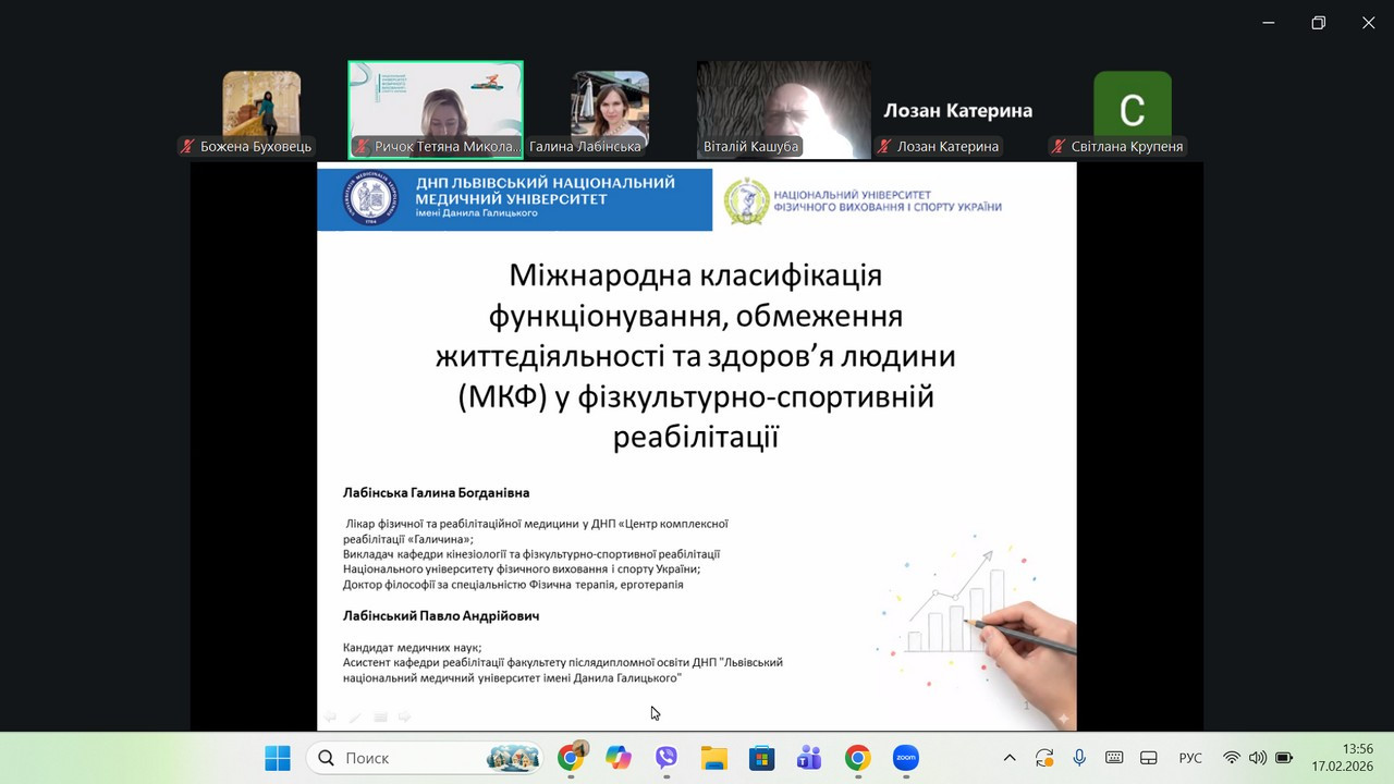 17 лютого 2026 року члени наукового гуртка «Сучасні інноваційні підходи у фізичній культурі та спорті» під керівництвом завідувача кафедри гімнастики та фізкультурно-спортивних технологій, професора, д-ра пед. наук Бориса ДОЛИНСЬКОГО долучились до проведення майстер-класу «Міжнародна класифікація функціонування, обмеження життєдіяльності та здоров’я людини (МКФ) у фізкультурно-спортивній реабілітації».