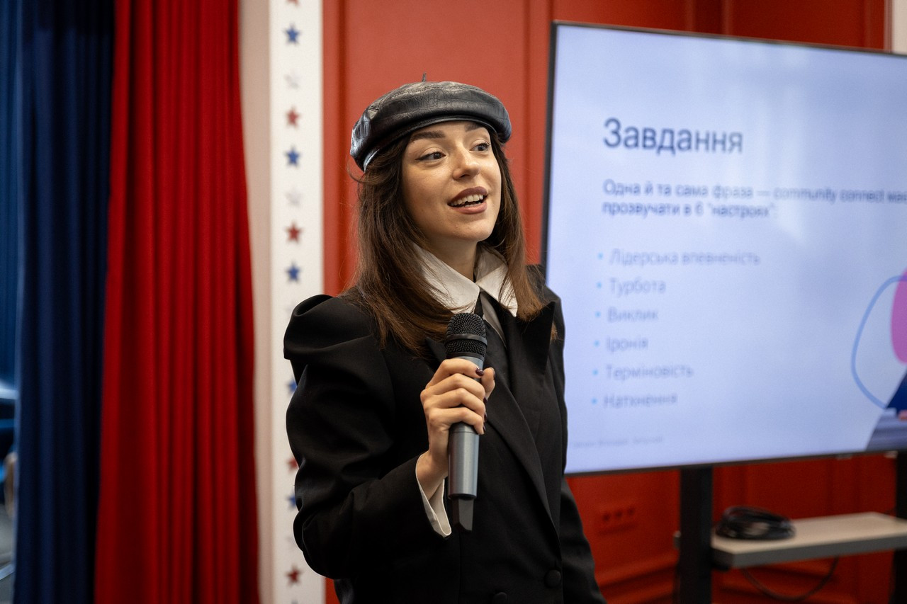 America House є частиною міжнародної мережі публічної дипломатії, що створює простір для розвитку молодіжних ініціатив і лідерства в глобальному контексті. Фінальний день став кульмінацією інтенсиву, де був представлений авторський тренінг Катерини Ткаченко з публічної комунікації та лідерства. Понад 60 учасників працювали в командах у форматі високої динаміки: створювали пітчі, проходили комунікаційний пресинг, моделювали кризові брифінги та формували власну медійну позицію. Це була не лекція, а практичний простір реального публічного досвіду. Експертність менторки поєднує академічну глибину та сценічну практику: участь у медійних проєктах, виступи на великих майданчиках, реалізація культурних подій. Саме ця синергія науки й сцени дозволила перетворити тренінг на інтенсив лідерського зростання. У центрі роботи були: структура сильного виступу, elevator pitch як інструмент запуску ідей, модель 4D для переконливої презентації, комунікація під тиском. «Community Connect» у Львові став прикладом формування горизонтальної національної мережі молодих лідерів. Три міста – одна стратегія розвитку, інтегрована в міжнародну платформу. Університет Ушинського у цьому контексті виступає центром впливу, а сучасна викладачка державного закладу виступає лідером думки, фасилітатором змін і медійною постаттю, здатною масштабувати академічну експертизу на національний і міжнародний рівні.