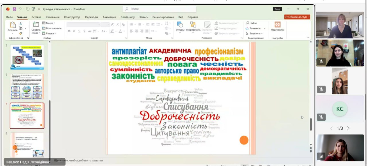 Особливу увагу було приділено важливості академічної доброчесності як невід’ємної складової професійної культури майбутнього фахівця та науковця.