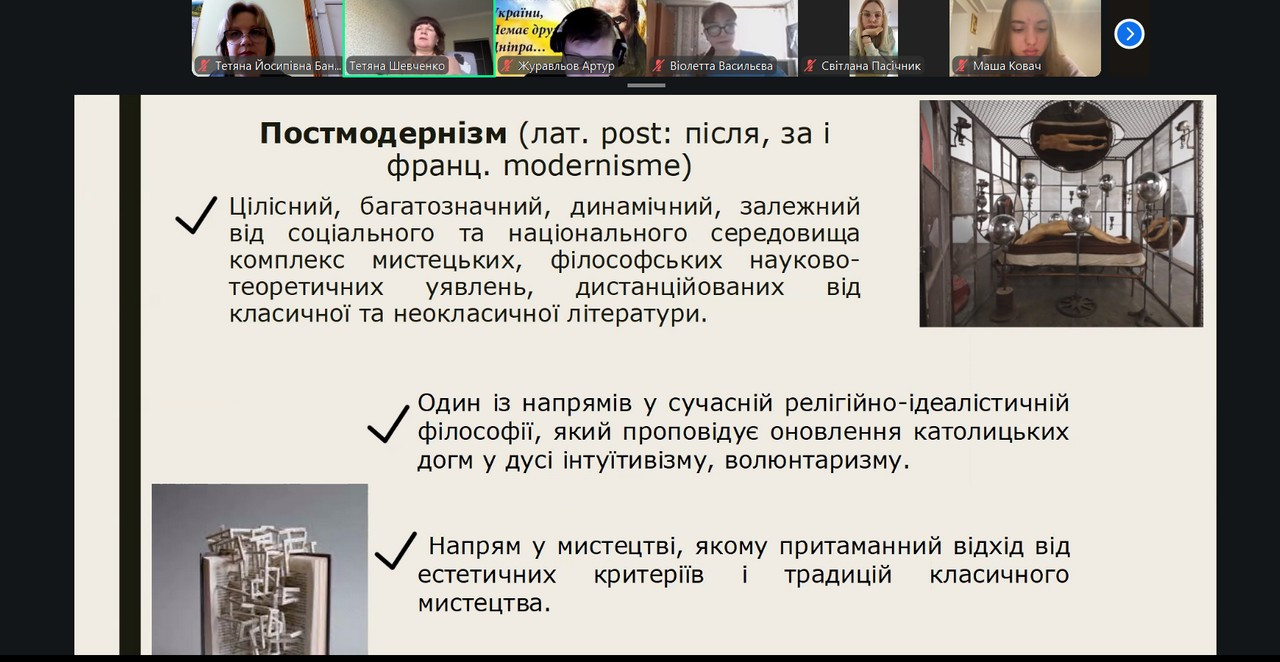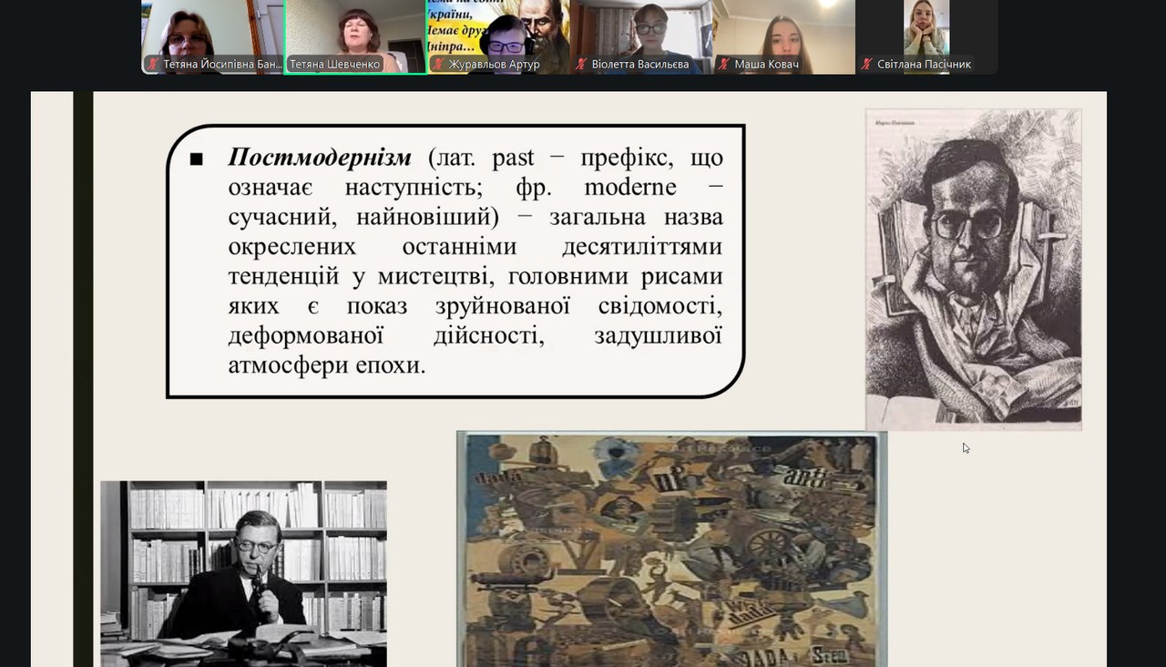 З метою впровадження гостьових лекцій в освітній процес Університету Ушинського кафедрою української та зарубіжної літератур було запрошено доктора філологічних наук, професора, завідувача кафедри української літератури та компаративістики Одеського національного університету імені І. І. Мечникова Шевченко Тетяну Миколаївну – відому літературознавицю, дослідницю сучасної української літератури, співавторку унікального сучасного видання «Історія української літератури» у 12-ти томах (2024 р.), яка 19 березня 2026 року в межах дисципліни доцента кафедри Бандури Т. Й. «Актуальні проблеми світової літератури» магістрам 1-го року навчання прочитала лекцію «Художні напрями сучасної української літератури». В лекції було презентовано, осмислено, досліджено основні художні напрями й школи в сучасній українській літературі, їх соціо-культурну специфіку й риси, зокрема постмодернізм, метамодернізм, неореалізм, діджитал-модернізм та ін. Матеріал лекції-візуалізації відзначався ґрунтовністю, інноваційністю, сучасними методологіями, цікавими літературними персоналіями, явищами, рецептивними експериментами. Подібні гостьові лекції вже стали традицією в сприятливій навчально-науковій співпраці Університету Ушинського та Одеського національного університету імені І. І. Мечникова.