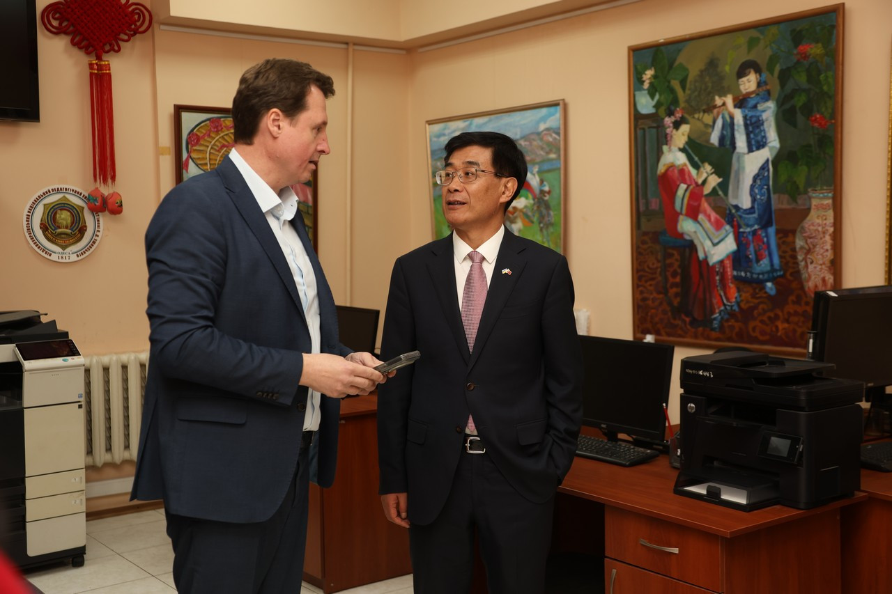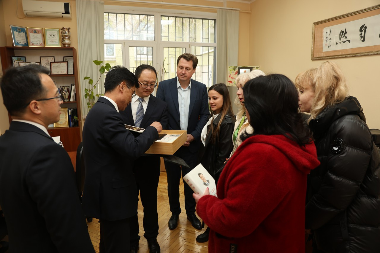 На зустрічі із представниками Університету Ушинського, а саме: ректором Андрієм КРАСНОЖОНОМ, проректором з наукової роботи Ганною МУЗИЧЕНКО, деканом факультету іноземних мов Олександрою ПОПОВОЮ, начальником відділу міжнародних зв’язків Олександрою МОРГУН та директором Одеського ліцею №117 Одеської міської ради, директора Класу Конфуція при Університеті Ушинського Наталією СТАЦЕНКО було обговорено стратегічні вектори розвитку партнерської співпраці між Китаєм та Україною в галузях освіти, науки, культури, соціальній сфері та в межах Державної ініціативи КНР «Один пояс – один шлях».