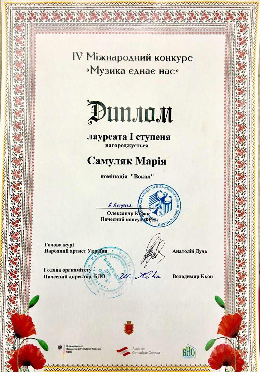В номінації «Вокал» переможцями конкурсу стали студенти факультету музичної та хореографічної освіти. Звання Лауреатів І премії посіли Самуляк Марія (клас викл. Толстової Н.М., концертмейстер Чеменян Г.П.) та Гуань Пенхуей (клас викл. Чеменян Г.П., концертмейстер Турбинський А.Ю.).