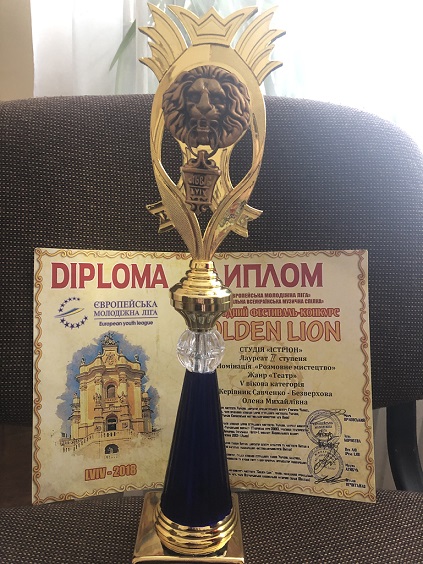 Вітаємо театральний колектив "Істірон" з перемогою і званням лауреатів ІІ ступеню на Міжнародному фестивалі-конкурсі "Golden Lion" (м.Львів). Вже два роки студенти 3-ого курсу факультету музичної та хореографічної освіти під керівництвом викладача акторської майстерності О.М.Савченко-Безверхової, радують нас своєю творчістю та численними перемогами. Зараз у них в розробці знаходиться нова постановка, яку ми всі з нетерпінням чекаємо.