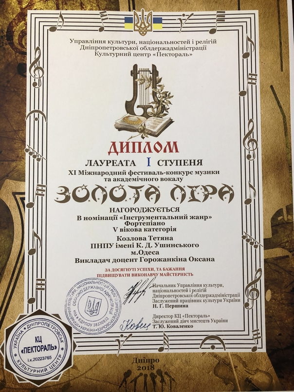 З 8 по 10 грудня 2018 року в місті Дніпро пройшов ХІ Відкритий Міжнародний фестиваль-конкурс музики та академічного вокалу "Золота Ліра", в якому студенти факультету музичної та хореографічної освіти посіли призові місця.