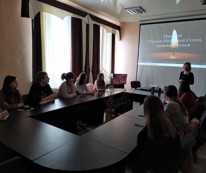 В рамках шанування 5 річниці Дня Героїв Небесної Сотні — 20 лютого (указ Президента України “Про вшанування подвигу учасників Революції Гідності та увічнення пам’яті Героїв Небесної Сотні”) відбувся відкритий захід “Герої не вмирають” старшого викладача кафедри політичних наук і права Пронози І. І. зі студентами першого року навчання спеціальності 052 “Політологія”. Метою заходу було виховання патріотичної свідомості майбутніх політологів, повага до національних інтересів України та її європейського вибору, прав і свобод людини та громадянина.