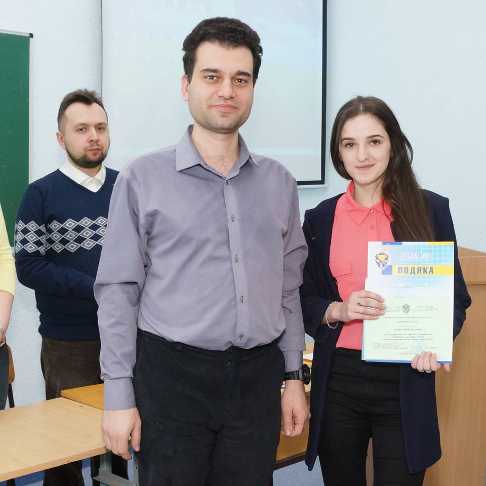 28 березня 2019 року студенти та аспіранти спеціальності 052 "Політологія" під керівництвом завідуючої кафедри політичних наук і права, д.політ.н., проф. Наумкіної С. М. взяли участь в 4 Всеукраїнській науковій конференції студентів та молодих вчених в Університеті імені Альфреда Нобеля (м. Дніпро). Університет Ушинського представили студенти першого, другого та третього року навчання спеціальності 052 "Політологія" та підготували виступи з проблематики політичних інститутів та процесів, міжнародних відносин, відносин мас-медіа та громадянського суспільства. Студентка другого курсу Мицко Ірина та студент третього курсу Горобець Василь були відзначені подяками за кращі доповіді. Вітаємо!