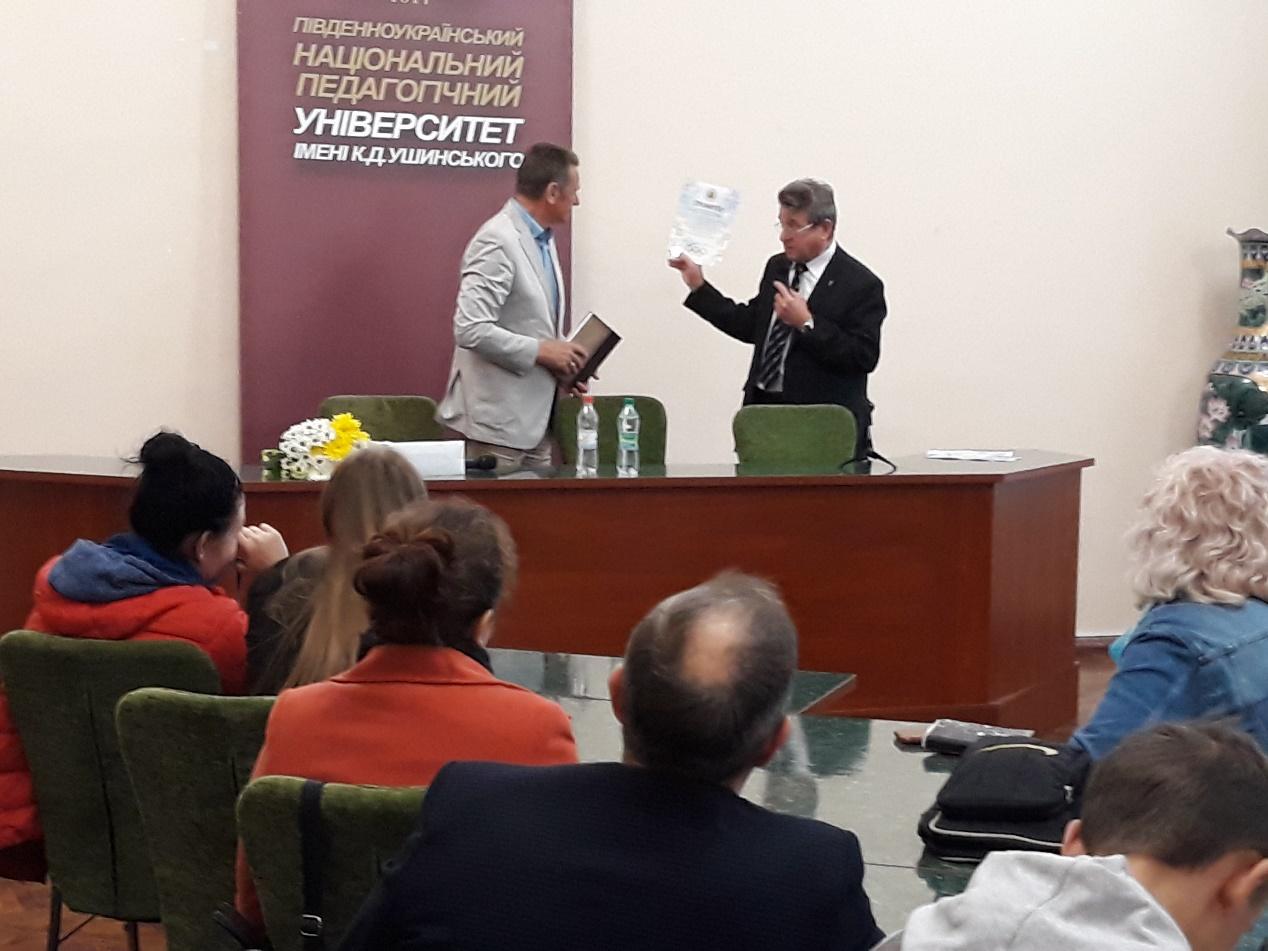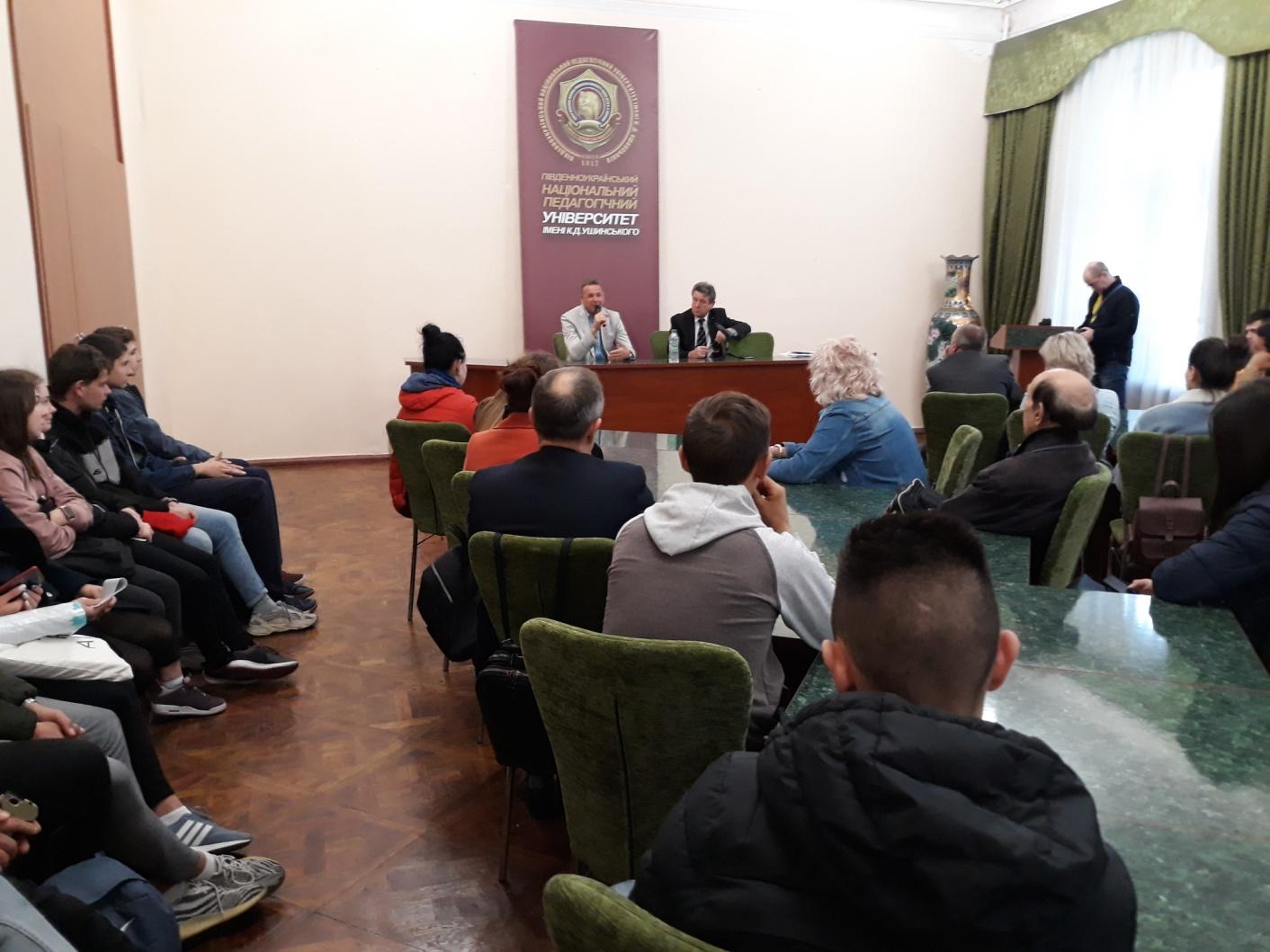 Зустріч відбулася в плані реалізації домовленостей міжнародного договору між Університетом Ушинського і Мозирським державним педагогічним університетом імені І.П. Шамякіна, доцентом якого є Володимир Володимирович.