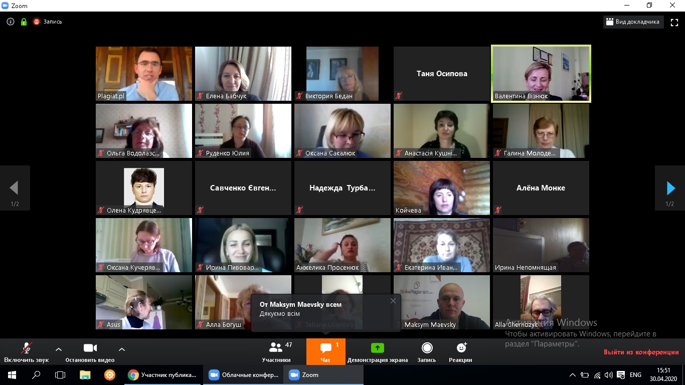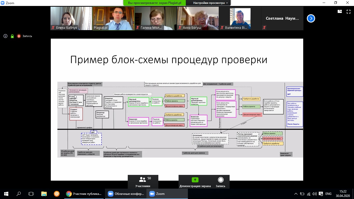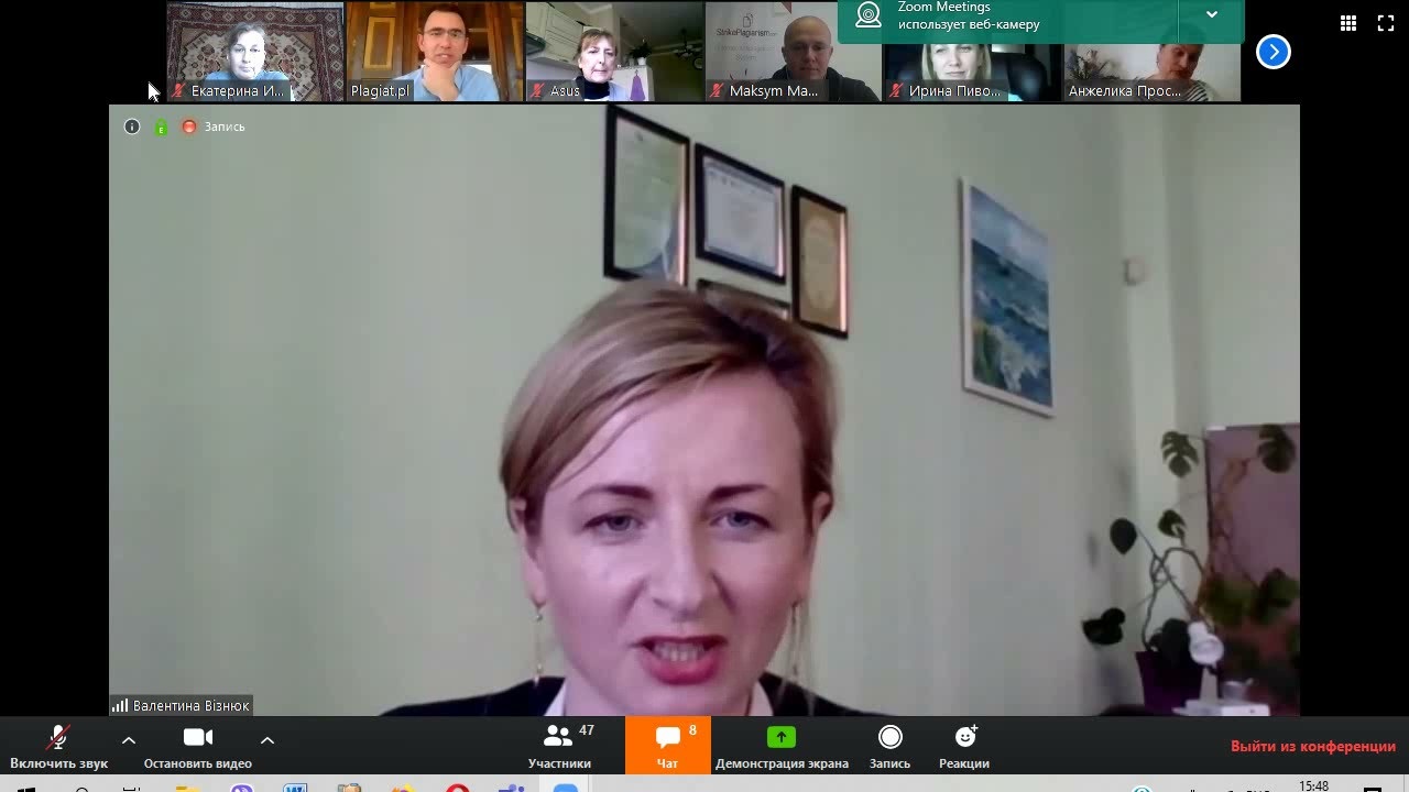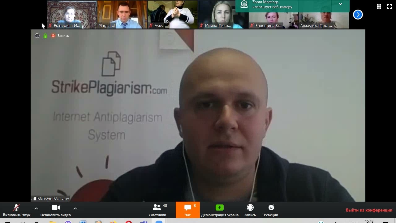Алі Тахмазов, виконавчий директор компанії Plagiat.pl, розповів про особливості опрацювання звіту подібності, необхідні заходи для виявлення плагіату і обходу системи перевірки. Під час онлайн-зустрічі учасники активно обговорювали питання перевірки студентських робіт на наявність текстових запозичень.