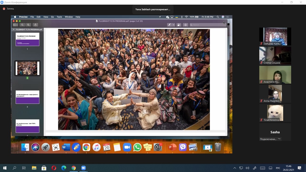 26 лютого 2021 року на платформі Zoom Meeting було проведено конференцію, на якій відбулася презентація програм імені Фулбрайта для учасників освітнього процесу Університету Ушинського.