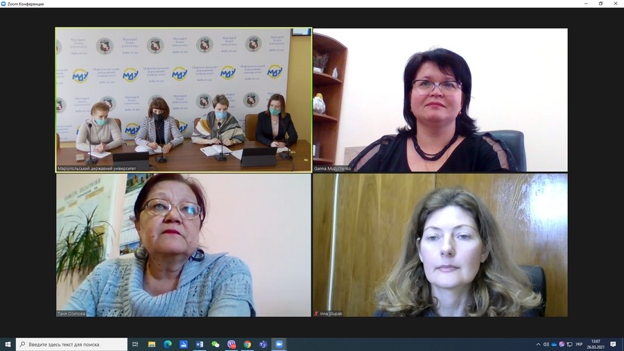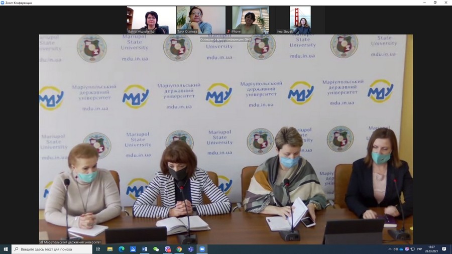 Нарада відбувалася на рівні проректорів з наукової діяльності та міжнародних зв’язків (Музиченко Г. В., Ступак І. В. – від Університету Ушинського; Булатова О. В., Марена Т. В., Павленко О. Г. – від Маріупольського державного університету). Сторони обмінялися думками щодо нарощування потенціалу спільних наукових досліджень, публікаційної активності, внутрішньої та міжнародної мобільності.