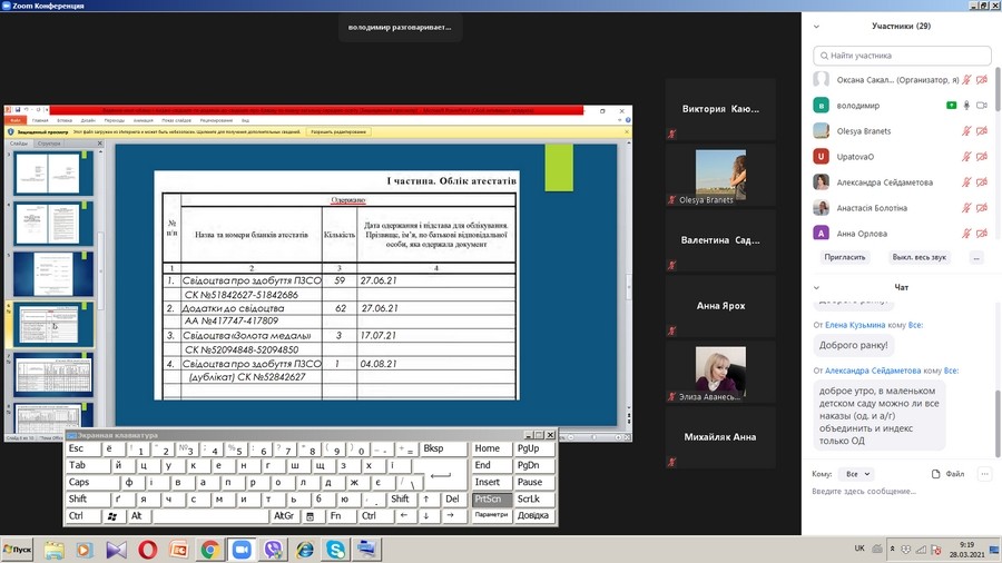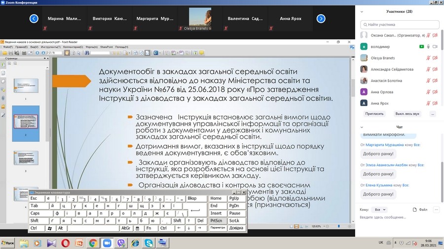 29 березня 2021 р. студенти спеціальності 073 Менеджмент Університету Ушинського взяли участь у семінарі-практикумі «Особливості ведення ділової документації в закладі освіти», який було проведено заступником начальника територіального відділу освіти Приморського району Департаменту освіти та науки Одеської міської ради. Під час семінару обговорювалися питання організації діловодства та дотримання відповідної інструкції в закладах загальної середньої освіти. Окрема увага була відведена підготовці наказів та обліку документів суворої звітності.