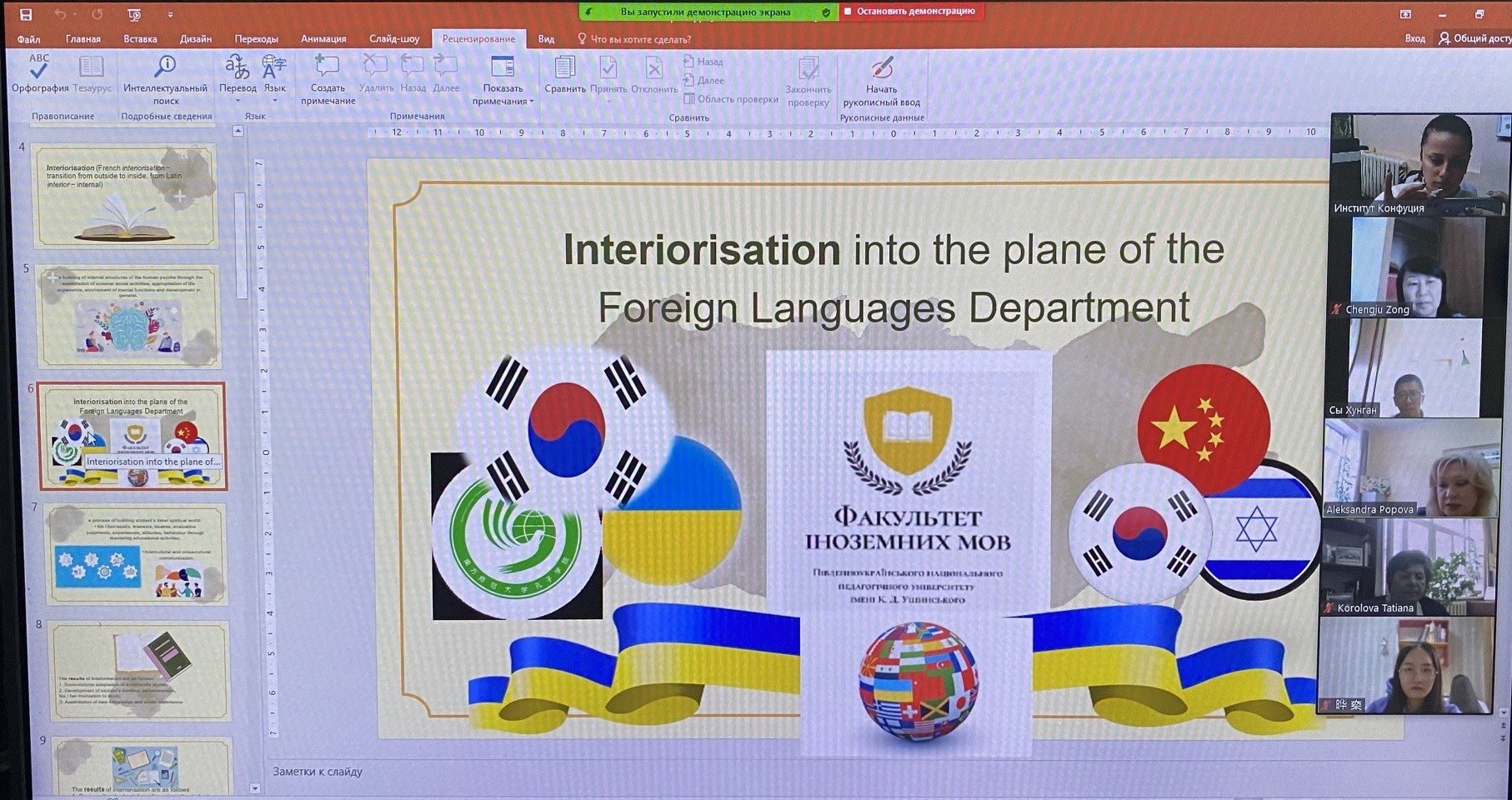 12-13 квітня 2021 року кафедрою перекладу і теоретичної та прикладної лінгвістики Державного закладу «Південноукраїнський національний педагогічний університет імені К. Д. Ушинського», Харбінським інженерним університетом, секцією теоретичної та прикладної лінгвістики Південного наукового центру НАН України і МОН України було проведено VІІ Міжнародну наукову онлайн конференцію «Актуальні проблеми філології і професійної підготовки фахівців у полікультурному просторі». Форум відбувся за підтримки та участі Освітньо-культурного центру «Інститут Конфуція» Університету Ушинського й аспірантів, які навчаються за спеціальністю 015 Професійна освіта (за спеціалізаціями).