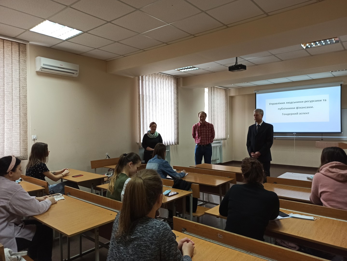 Під час заняття було обговорено проблеми взаємовпливу гендерної рівності та публічних фінансів; гендерної дискримінації та тенденцій в міжнародному та вітчизняному законодавстві щодо її подолання тощо. Студентів також зацікавили гендерні аспекти інституалізації публічного управління; шляхи подолання гендерної нерівності в державному управлінні та органах місцевого самоврядування; сучасні тенденції управління людськими ресурсами тощо.