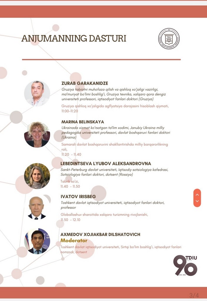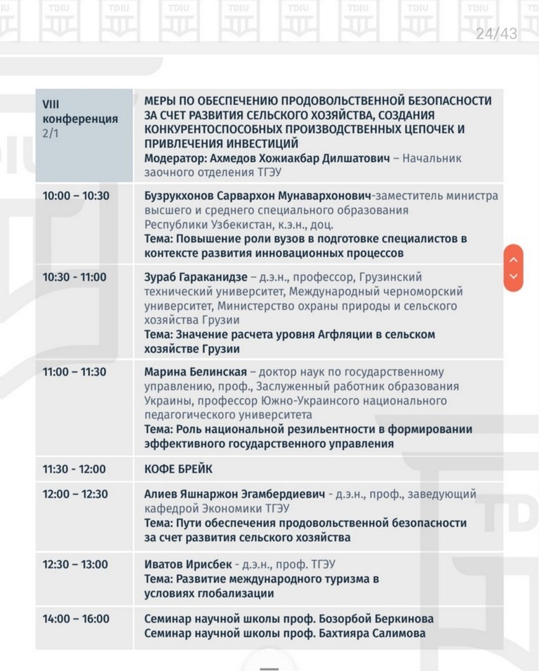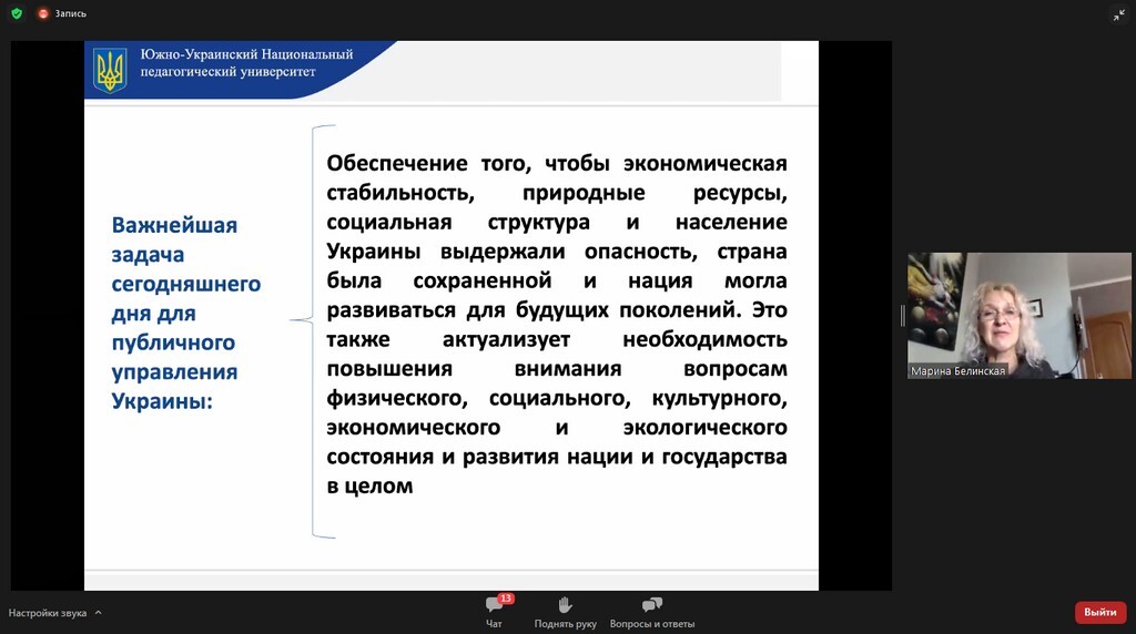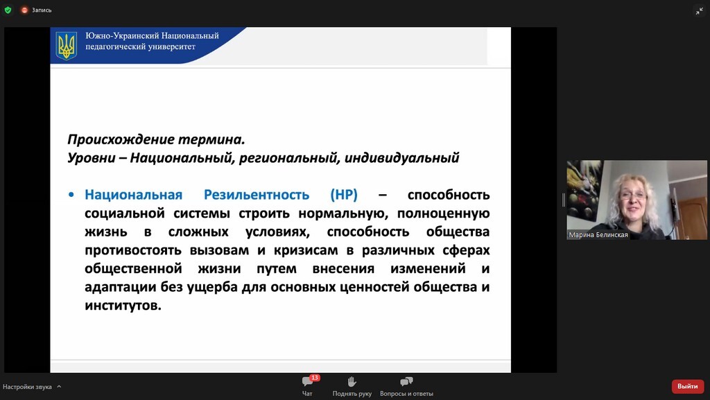 26 листопада 2021 року професор кафедри освітнього менеджменту та публічного управління Університету Ушинського М. М. Білинська взяла участь у міжнародній конференції «Роль сучасних освітніх закладів в інноваційному, соціально-економічному розвитку нового Узбекістану», яка проходила в Ташкентському державному економічному університеті (Республіка Узбекістан) з доповіддю «Роль національної резільєнтності у формуванні ефективного державного управління». Доповідь викликала зацікавленість присутніх, за результатами виступу відбулося обговорення основних питань державного управління в сучасних умовах. Було обговорено також шляхи подальшої академічної співпраці між закладами вищої освіти обох країн.