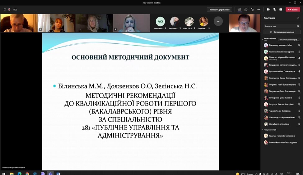 Провела семінар професор кафедри публічного управління та адміністрування, доктор наук з державного управління, заслужений працівник освіти України Білинська М. М. На семінарі були присутні також гарант освітньо-професійної програми «Публічне управління та адміністрування», наукові керівники бакалаврських робіт.
