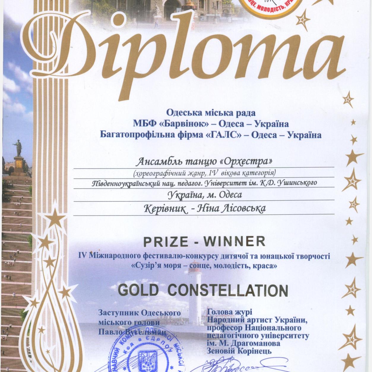 Студенти Університету Ушинського факультету музичної та хореографічної освіти Лі Ятін, ансамбль танцю «Орхестра», аспірантки кафедри музичного мистецтва і хореографії освіти Лай Сяоцянь та Чжоу Є. яскраво виступили на ІV Міжнародному фестивалі-конкурсі «Сузір’я моря – сонце, молодість, краса», що проводився в Одесі з 15.06.2018 по 17.06.2018. Цей конкурс традиційно проводиться у рамках Міжнародного фестивального проекту «Сузір’я» під патронатом, мерії Будапешта, мерії Пірана (Словенія), мерії Ліптовського Мікуліша (Словаччина), Національної академії мистецтв України, Міністерства освіти і науки України, Одеської міської ради.