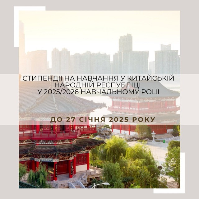 Міністерство приймає заявки на отримання державної стипендії Уряду Китайської Народної Республіки до 27 січня 2025 року.