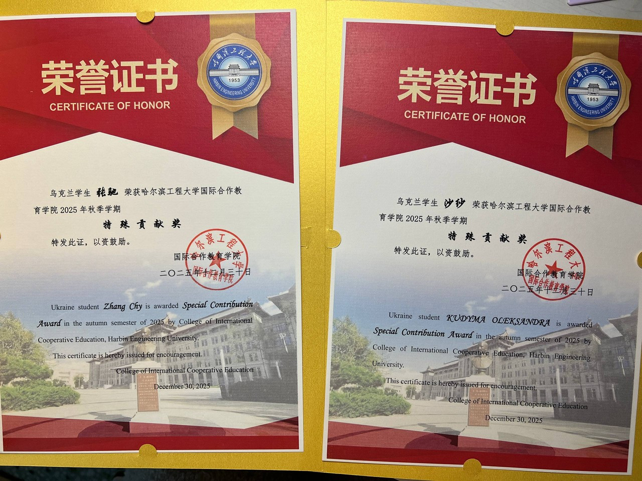 Студентки факультету іноземних мов отримали нагороду «SPECIAL CONTRIBUTION AWARD» у Харбінському інженерному університеті!