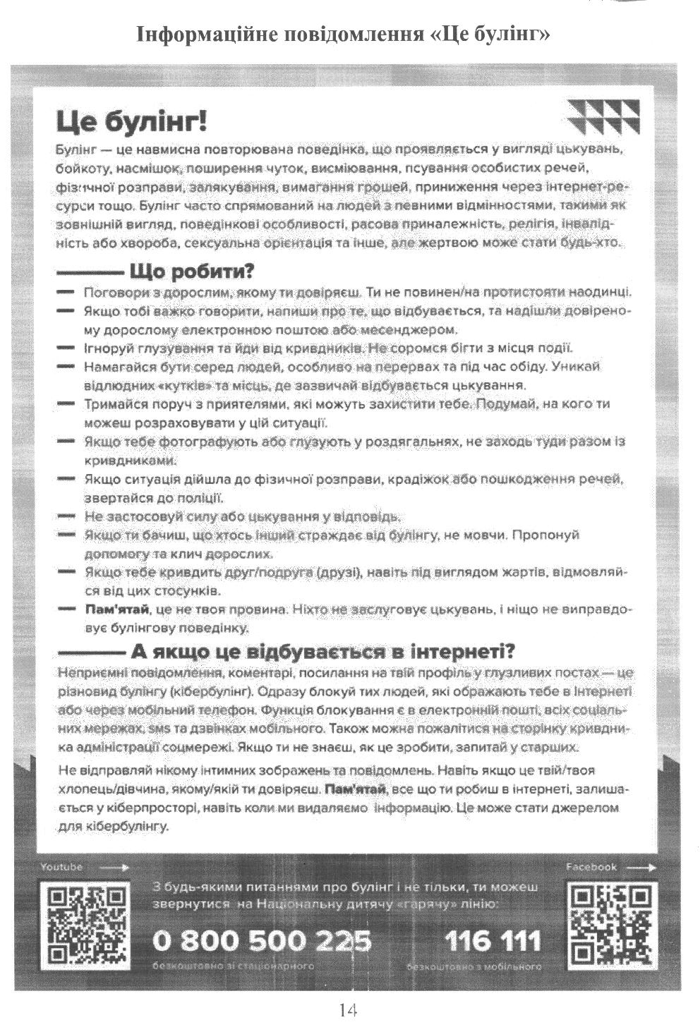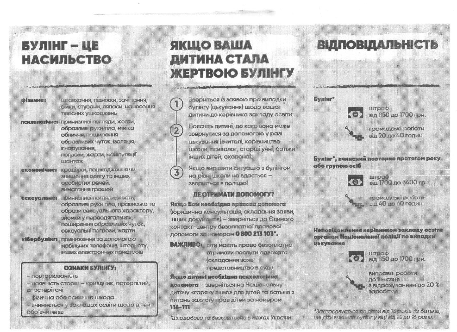 - Гаряча телефонна лінія щодо булінгу 116 000;
