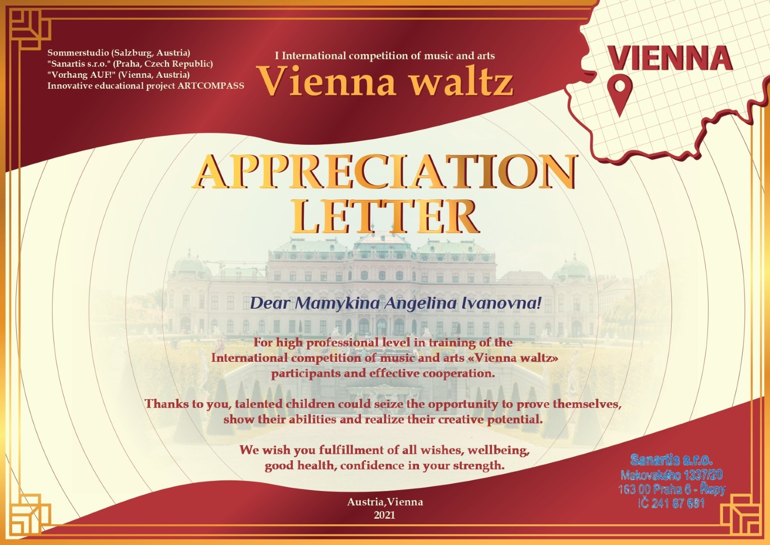 Студенти факультету музичної та хореографічної освіти взяли участь у Міжнародному конкурсі музично-художньої творчості "VIENNA WALTZ" ( «Віденський вальс»), який пройшов у м. Відень в лютому 2021 року. Даний проєкт підтримується рядом європейських культурних організацій: Sommerstudio (Salzburg, Austria) Vorhang AUF! (Vienna, Austria) Sanartis (Prague, Czech Republic). Журі конкурсу, до складу якого увійшли педагоги Віденського університету музики і виконавського мистецтва, Музичної Академії Зальцбурга, Віденської театральної асоціації високо оцінило рівень ансамблево-виконавської майстерності Чжуань Сінь, Лі Хунянь, Ді Таньчао, Ганни Грабовської та присудило нашим конкурсантам І премію в номінації «Інструментальний ансамбль»!